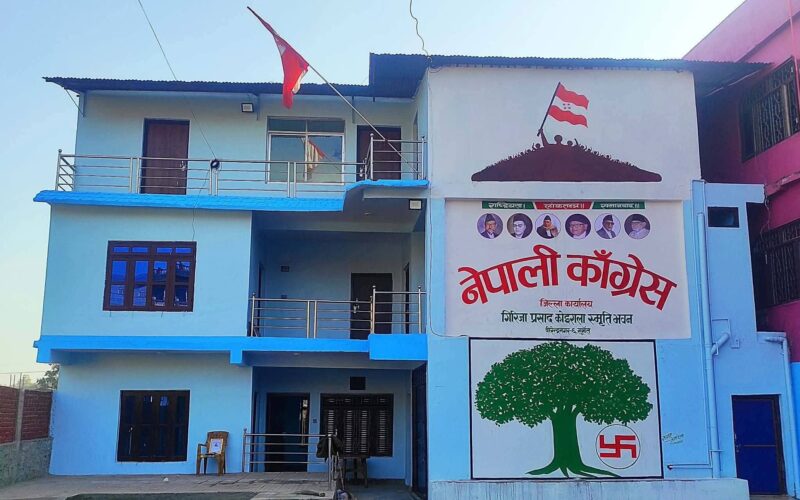 पुनर्निर्माण भयाे नेपाली कांग्रेसकाे पार्टी कार्यालय