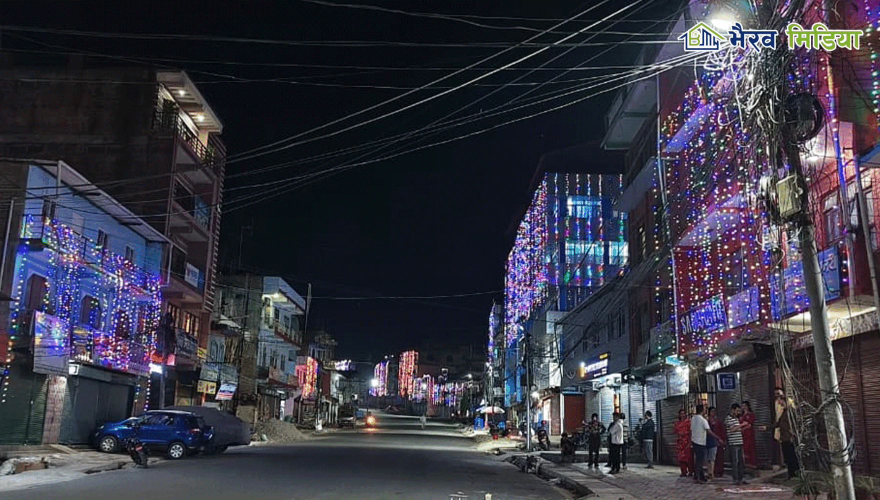 सुर्खेत । उज्यालो पर्व तिहार । घरदेखि मनसम्म सबैको अनुहारमा खुशी र हर्ष बोकेर ल्याउने एउटा हिन्दु नेपालीहरुको दोस्रो ठूलो चाड हो तिहार । वर्षाैदेखि टाढा रहेका दाजुभाई र दिदी बिहिनीबीचको नातालाई अझ प्रगाड बनाउन आइपुग्छ तिहार । हरेक वर्ष जस्तै यसपालि पनि खुशी र उज्यालो बोकेर तिहार हाम्रो घर आँगनमा भित्र्एिको छ । भाइ टीका नजिकिदै गर्दा शहर बजारहरु झिलीमिली छाएको छ । अन्य जिल्लामा जस्तै कर्णाली प्रदेशको राजधानी वीरेन्द्रनगरमा पनि झिलीमिली भएको छ ।