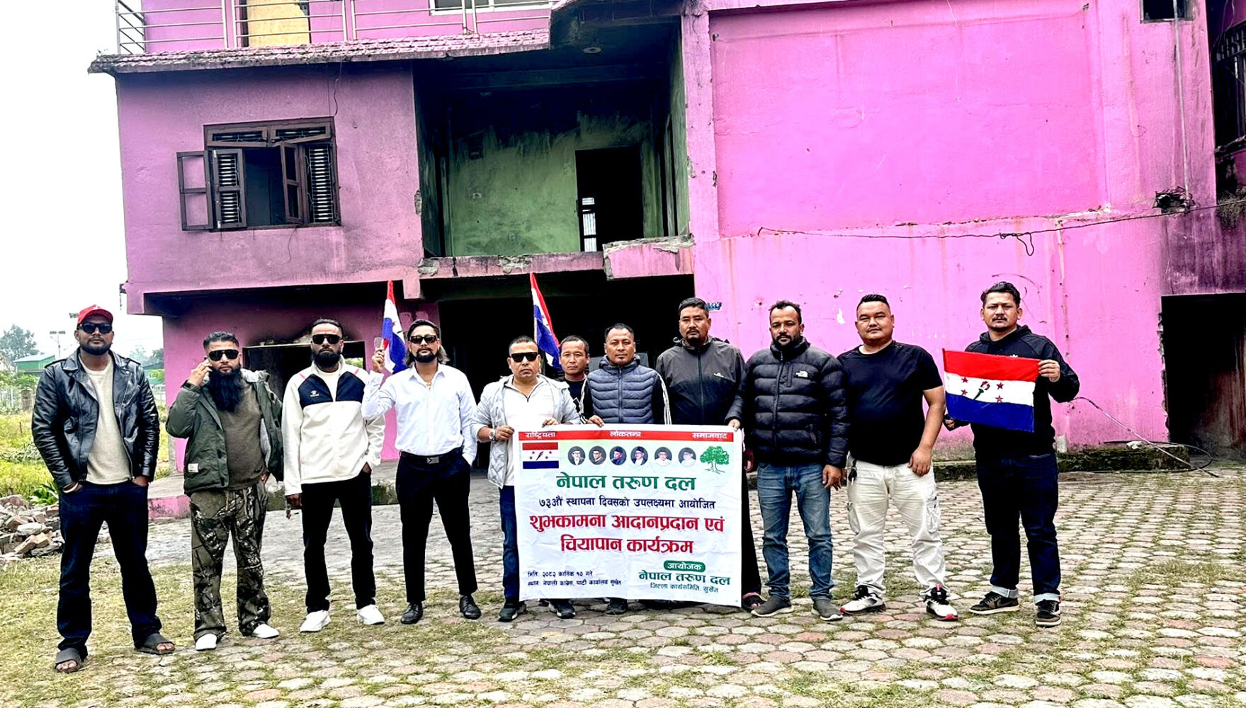 सुर्खेत । नेपाल तरूण दलको ७३ औ स्थापना दिवसको अवसरमा तरूण दल सुर्खेतले चियापन तथा शुभकामना आदानप्रधान कार्यक्रम गरेको छ । स्थापना दिवसको अवसरमा तरुण दल सुर्खेतले सोमबार पार्टी कार्यालयमा चियापन तथा शुभकामना आदानप्रधान कार्यक्रम गरेको हो ।
