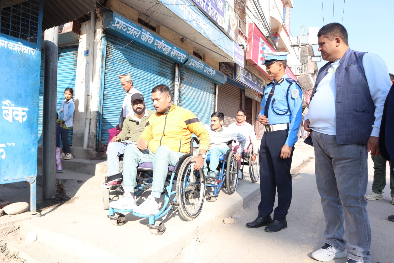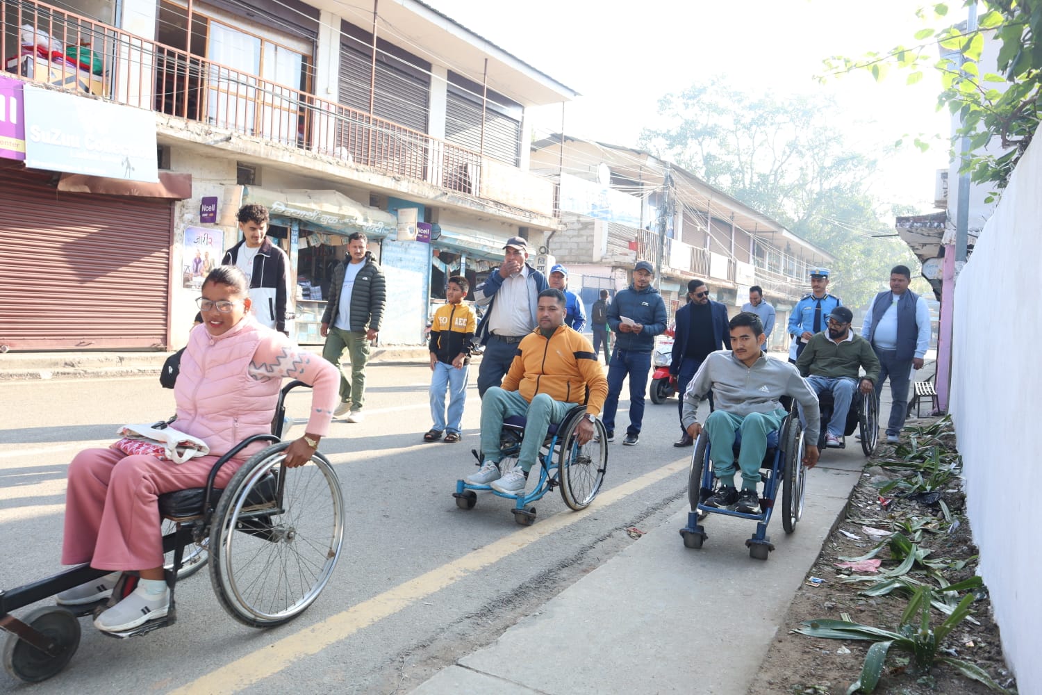 ह्विलचियर प्रयोगकर्ताहरु आयोजक स्पाइनल इञ्जुरी संघका पदाधिकारीहरु अध्यक्ष मदन कार्की, विष्णुकुमारी शाही, सचिव मदन कार्की, सल्लाहकार दिव्यराज खड्का लगायतले साँघुरा सडकपेटीले ह्विलचियर गुडाएर वीरेनद्रनगर बजार क्षेत्रका सडकहरु पहुँचयुक्त नरहेको देखाएका थिए।