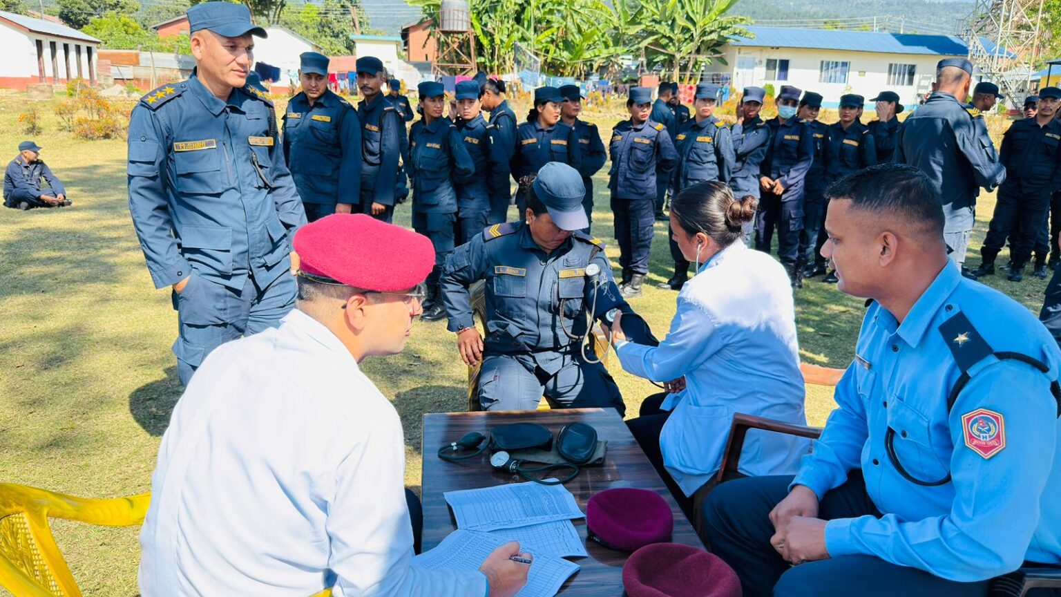 अस्पताल प्रमुख डा. श्याम कृष्ण लौडारीको नेतृत्वमा रहेको ६ सदस्यीय स्वास्थ्य टोलीले गणमा कार्यरत प्रहरीहरूलाई स्वास्थ्य परीक्षण र बिएमआई जाँच गरेको थियो।
