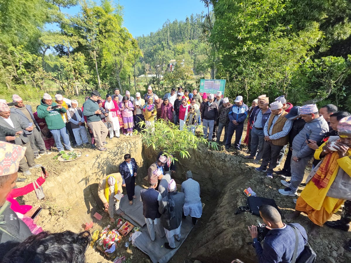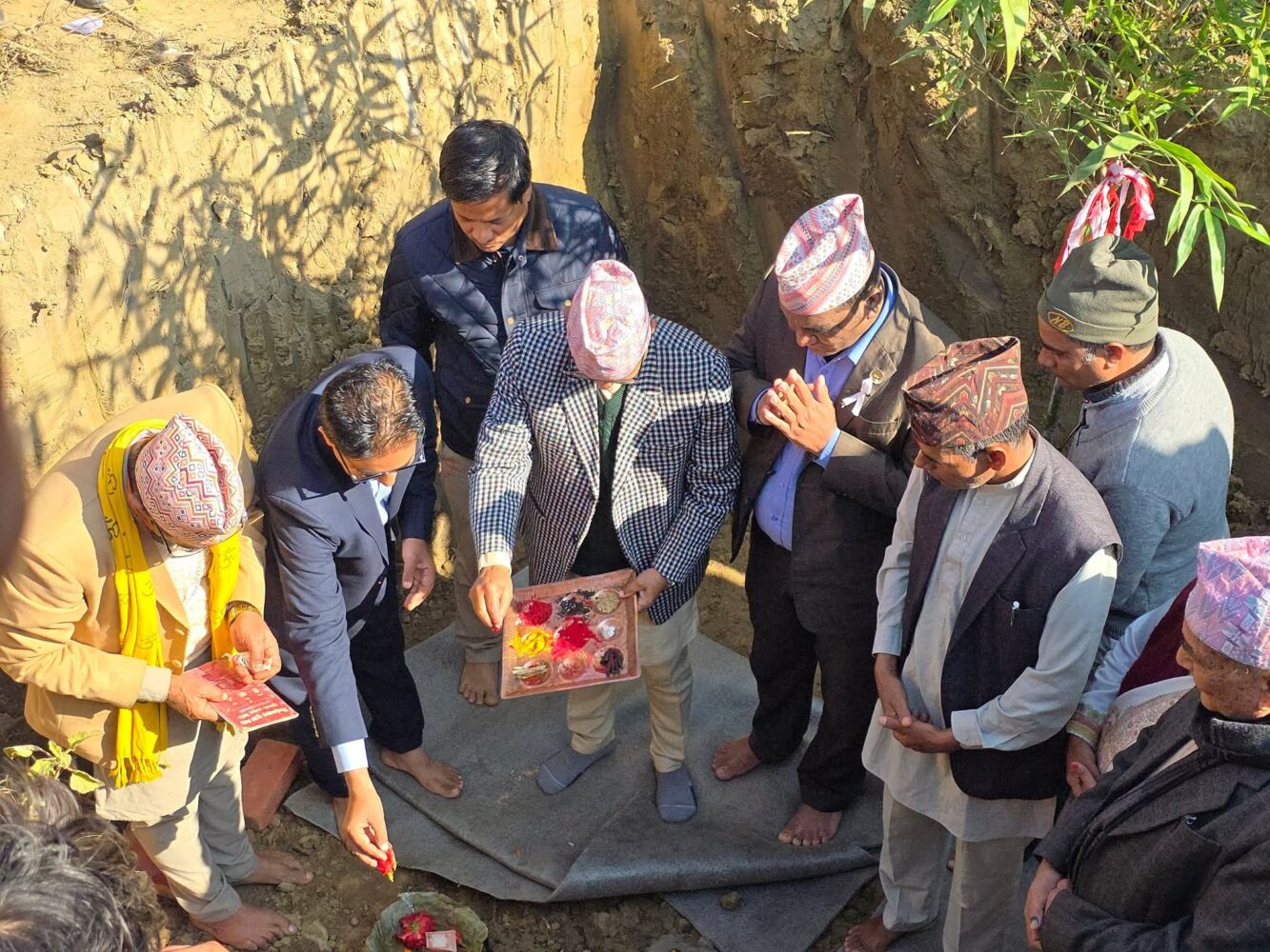 भवन कर्णालीका मुख्यमन्त्री यामलाल कँडेल, सामाजिक विकास मन्त्री घनश्याम भण्डारी र आश्रम विकास समितिको सहभागितामा भवन निर्माणका लागि शिलान्यास गरिएको हो ।