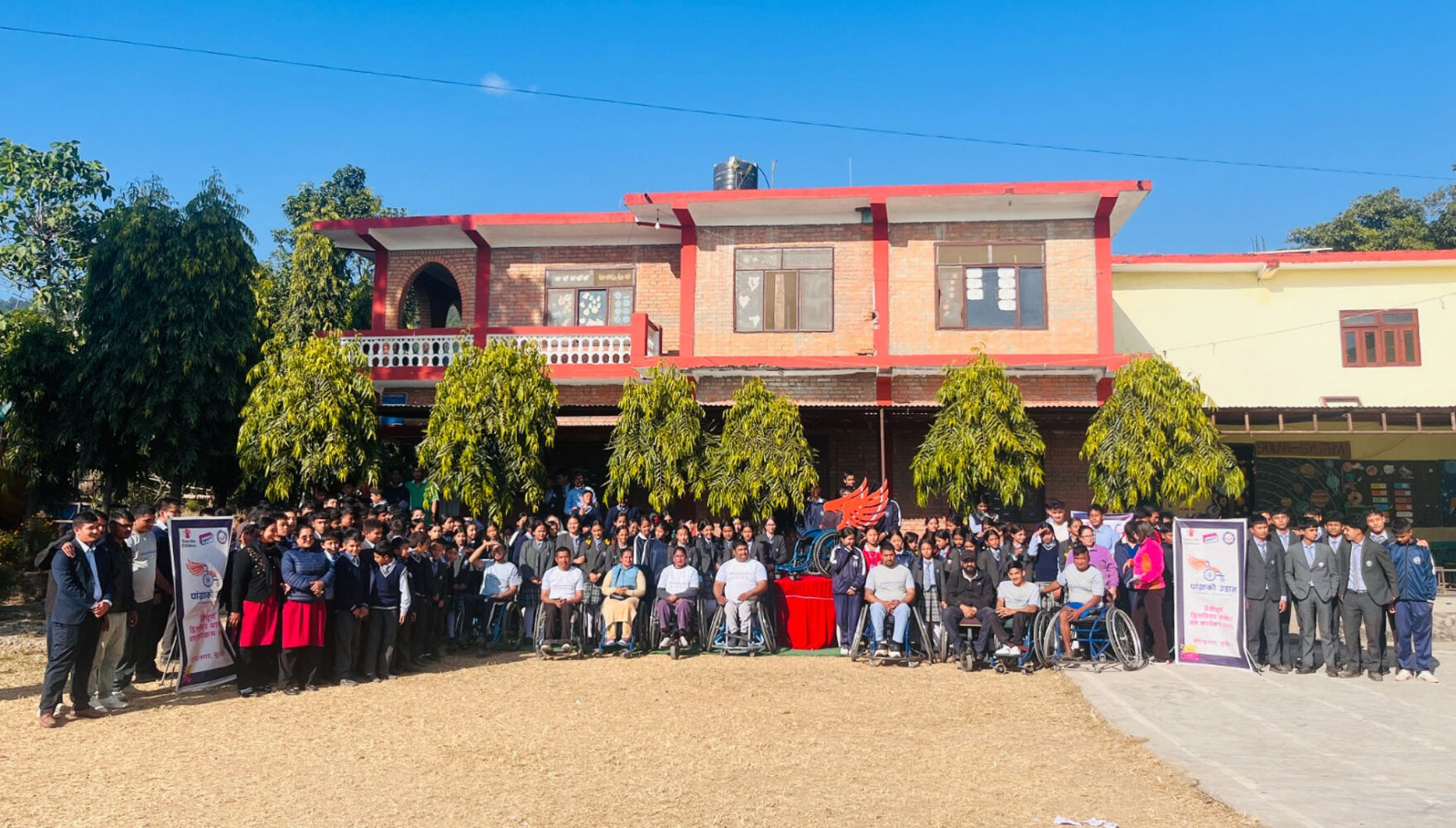 स्पाइनल इञ्जुरी अर्थात् मेरुदण्डमा चोट भई अपाङ्गता भएका व्यक्तिहरुलाई सशक्तिकरण गर्ने उद्देश्यले स्थापित “स्पाइन इञ्जुरी संघ”ले वीरेन्द्रनगरमा केहि समयदेखि “पांग्राको उडान” अभियान सञ्चालन गरिरहेको छ। सुन्तला रंगका एक जोडी पखेटा भएको निलो ह्विलचियर यस अभियानको मस्कटको रुपमा रहेको छ।