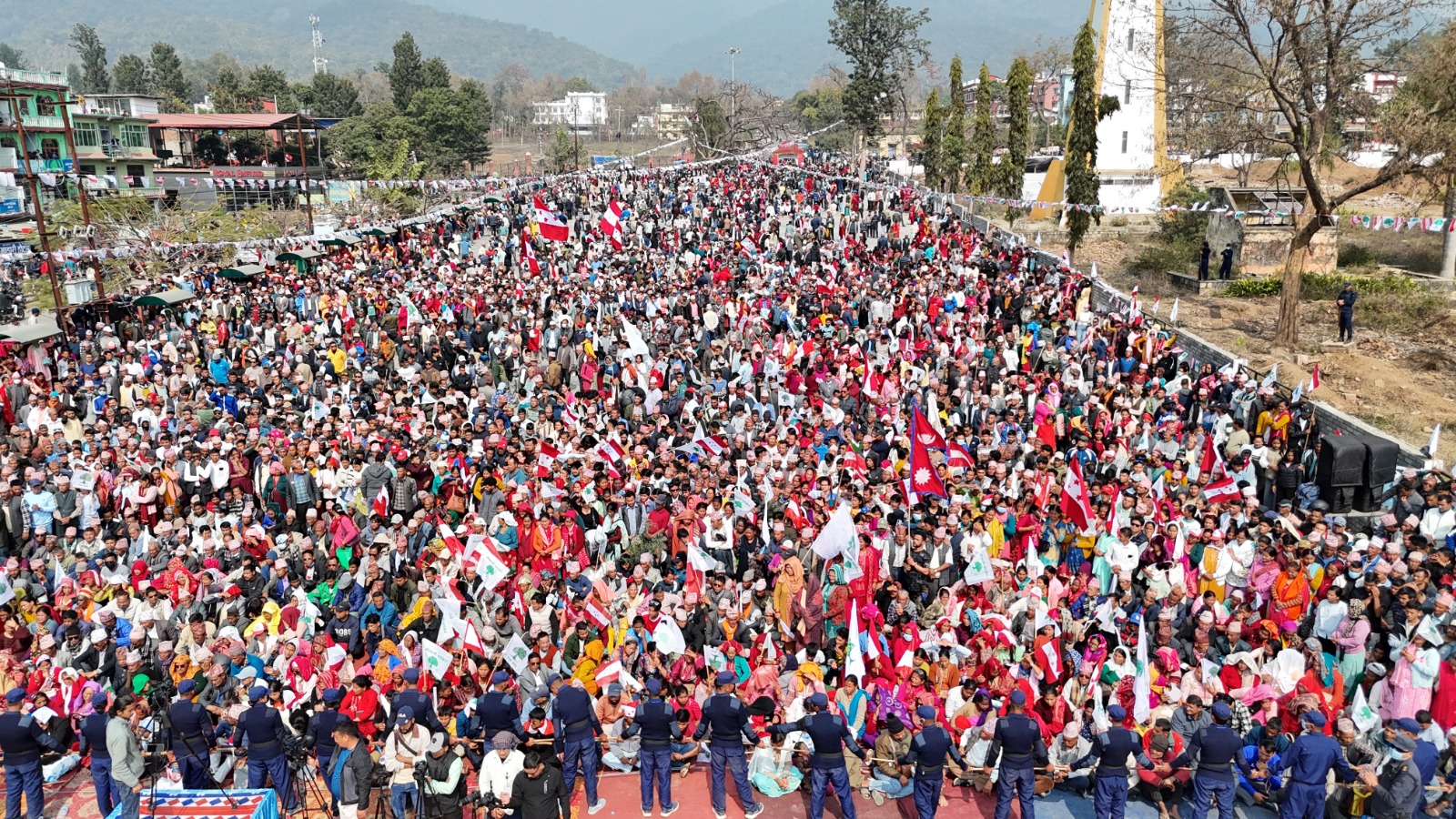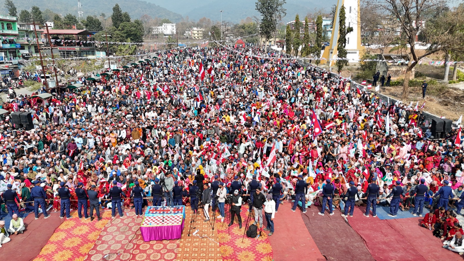 नेपाली काँग्रेसले बिहीबार सुर्खेतकाे वीरेन्द्रनगरमा विशाल चुनावी सभा गरेकाे छ । विशाल भनिएको सभामा कति सहभागी थिए ? के राष्ट्रिय स्वतन्त्र पार्टी भन्दा विशाल थियाे ? यसअघि फागुन ७ गते राष्ट्रिय स्वतन्त्र पार्टी घण्टाघर डबलीमै चुनावी सभा गरेको थियाे । काँग्रेसकाे शक्ति प्रदर्शन कस्तो थियाे ? ड्राेनसर्टबाट तस्बिरमा तपाईं आफै हेर्नाेस् ।