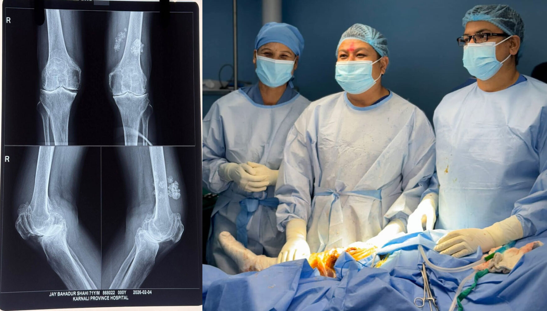 सुर्खेत । प्रदेश अस्पतालले जटिल मानिने ‘कृत्रिम घुँडा प्रत्यारोपण’ (Knee Replacement) शल्यक्रिया सफलतापूर्वक सम्पन्न गरेको छ। प्रदेश अस्पतालका चिकित्सकहरूले कम्मरको जोर्नी खिइएर दैनिक क्रियाकलाप गर्न समेत सास्ती भोगिरहेका बिरामीहरूको पाँचौँ पटक सफलतापूर्वक शल्यक्रिया गरेका हुन् । प्रदेश अस्पतालका चिकित्सक पदम गिरीका अनुसार कर्णाली प्रदेशमै पहिलो पटक गरिएको यो जटिल शल्यक्रिया गरिएकाे हाे । याेसँगै चिकित्सा सेवालाई नयाँ उचाइमा पुर्याएको छ। यसले कर्णालीको स्वास्थ्य क्षेत्रमा एउटा सुखद र गर्विलो अध्याय थपिएको चिकित्सककाे भनाइ छ। दक्ष जनशक्ति टिकाइ रहने र उपकरणकाे दीर्घकालीन प्रयाेग गर्न सकेकाे खण्डमा अब जटिल हाडजोर्नी सम्बन्धी उपचारका लागि काठमाडौँ वा छिमेकी मुलुक धाउनुपर्ने बाध्यताको अन्त्य हुने छ । याे सेवा लामो समयदेखि घुँडा खिइएर हिँडडुल गर्न अक्षम बिरामीका लागि यो सेवा वरदान सावित हुने छ।
