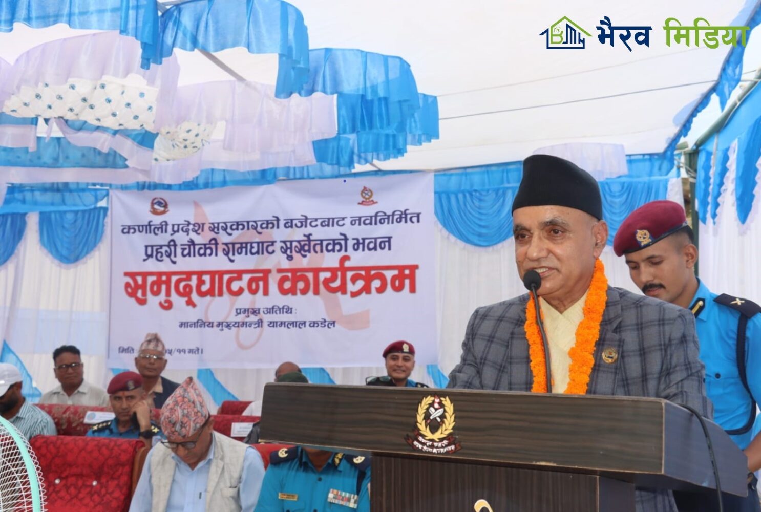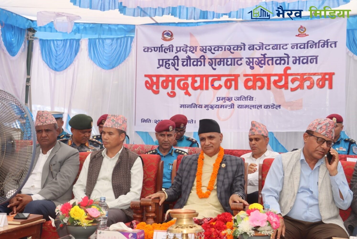 भवन उद्घाटन कार्यक्रममा आन्तरिक मामिला तथा कानुन मन्त्रालयका सचिव डा पुष्पराज शाही, कर्णाली प्रदेश प्रहरी प्रमुख डिआईजी माधवप्रसाद श्रेष्ठ, सुर्खेतका प्रमुख जिल्ला अधिकारी जगदिश्वर उपाध्याय लगायतको उपस्थिति रहेको थियो ।