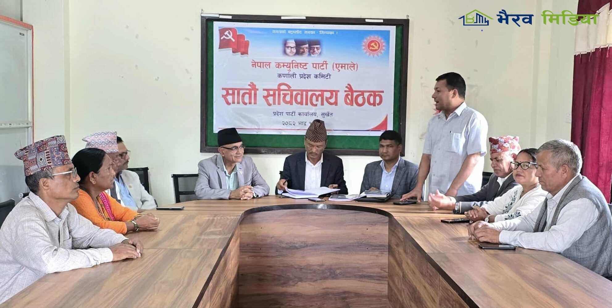 साथै बैठकमा आसन्न विधान महाधिवेशनमा मातहतका कमिटीले दिएका सुझावलाई मनन् गर्दै केन्द्रीय पदाधिकारीमध्ये कर्णाली प्रदेशबाट कम्तीमा एउटा पद सुनिश्चित हुने गरी छलफल अघि बढाउने विषयमा नेताहरुले धारणा राखेका थिए । यस अघि सम्पन्न प्रदेश कमिटीको बैठकले पार्टी विधानमै केन्द्रीय पदाधिकारीमा कर्णालीको प्रतिनिधित्व अनिवार्य उल्लेख गर्ने प्रयत्न गर्न सुझाव दिएको थियो । प्रदेश कमिटी अध्यक्ष गुलाबजंग शाहको अध्यक्षतामा बसेको बैठकमा पार्टी स्थायी कमिटी सदस्य समेत रहनुभएका मुख्यमन्त्री यामलाल कँडेलले प्रदेश सरकारका काम कारबाहीबारे जानकारी गराएका थिए ।