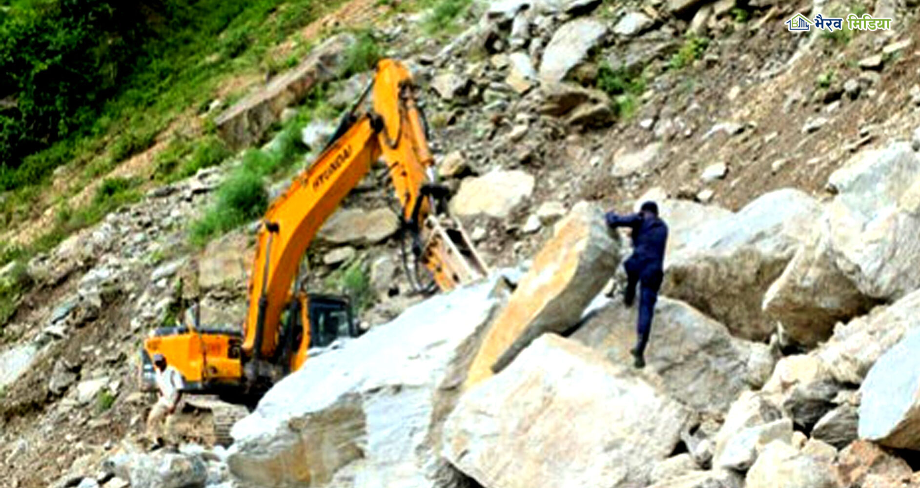 ठूला ढुंगा फुटाउन मेसिन (ब्रेकर) लगाएर होल खोप्न सुरु गरिसकेको छ । विस्फोटनको लागि जिल्ला सुरक्षा समितिको बैठक बसेर रक्षा मन्त्रालयको स्वीकृतिका लागि अनुरोध गरेको कालीकोटका प्रमुख जिल्ला अधिकारी गोकर्णराज सुयलले बताए । ‘ठूलो ढुंगा विस्फोटन गर्नुपर्ने अवस्था छ,’ उनले भने, ‘आज नै नेपाली सेनाले विस्फोट गरेर सडक खुलाउँछौं ।’ ३ दिनदेखि सडक अवरुद्ध हुँदा नागरिकलाई सास्ती भएको छ ।
