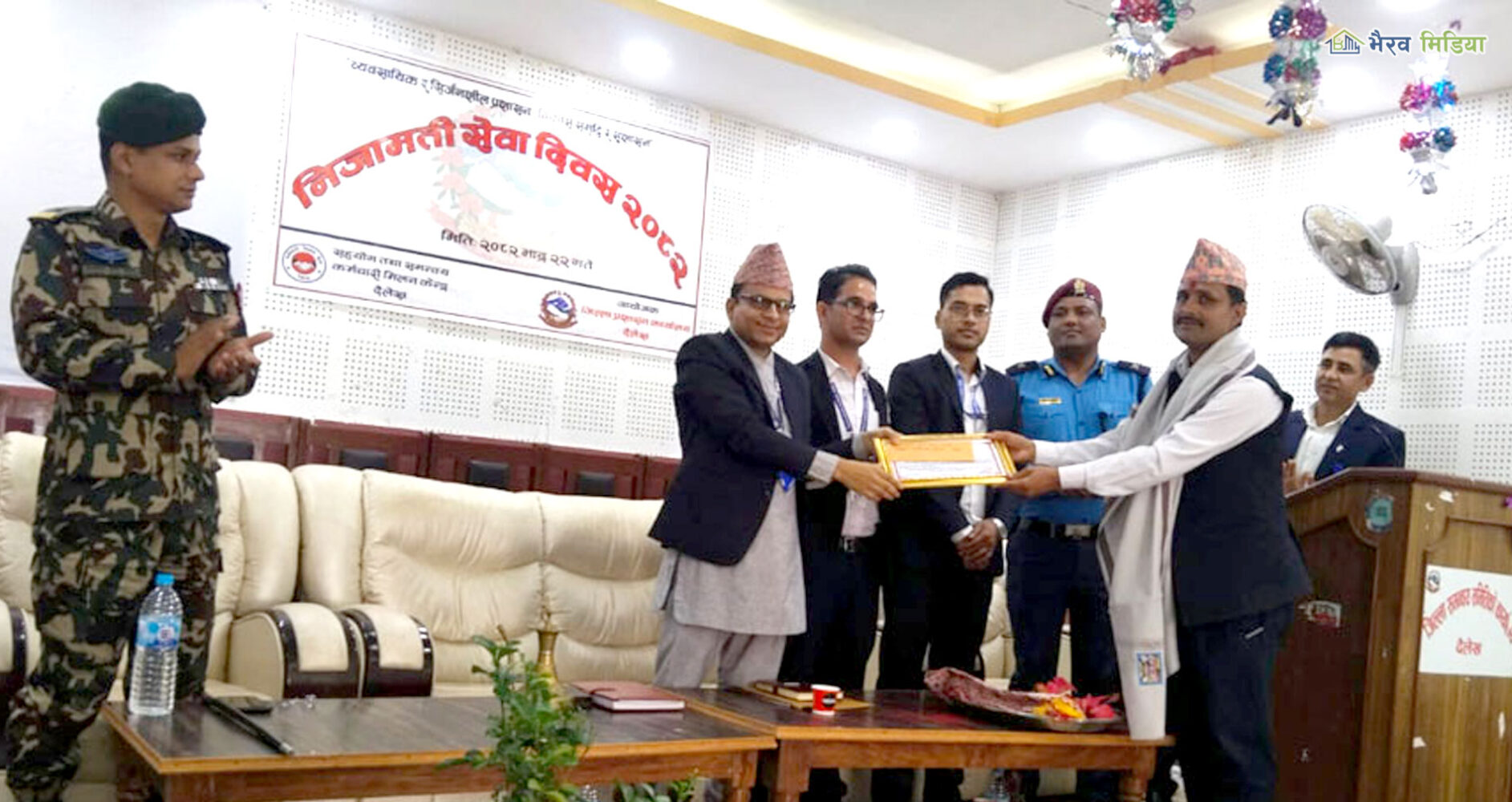 आइतबार निजामती दिवसका अवसर पारेर उनीहरुलाई सम्मान गरिएको जिल्ला प्रशासन कार्यालय दैलेखले जनाएको छ ।