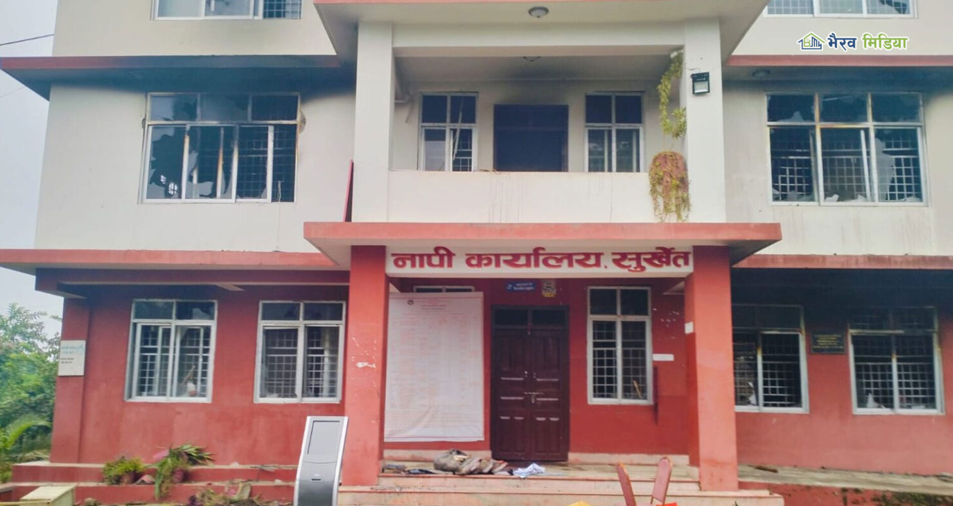 त्यस्तै प्रदेश लेखा नियन्त्रकको कार्यालय पनि पूर्ण रुपमा क्षतिग्रस्त छन् । आगजनीकै कारण कार्यालयका सम्पूर्ण सेवाहरु बन्द छन् । सुर्खेतकै नापी कार्यालय पनि तत्काल सेवा प्रवाह बन्द भएको छैन । नियमित सेवा प्रवाहका अहिलेदेखि सुरु हुन्छ भन्ने निश्चित छैन ।